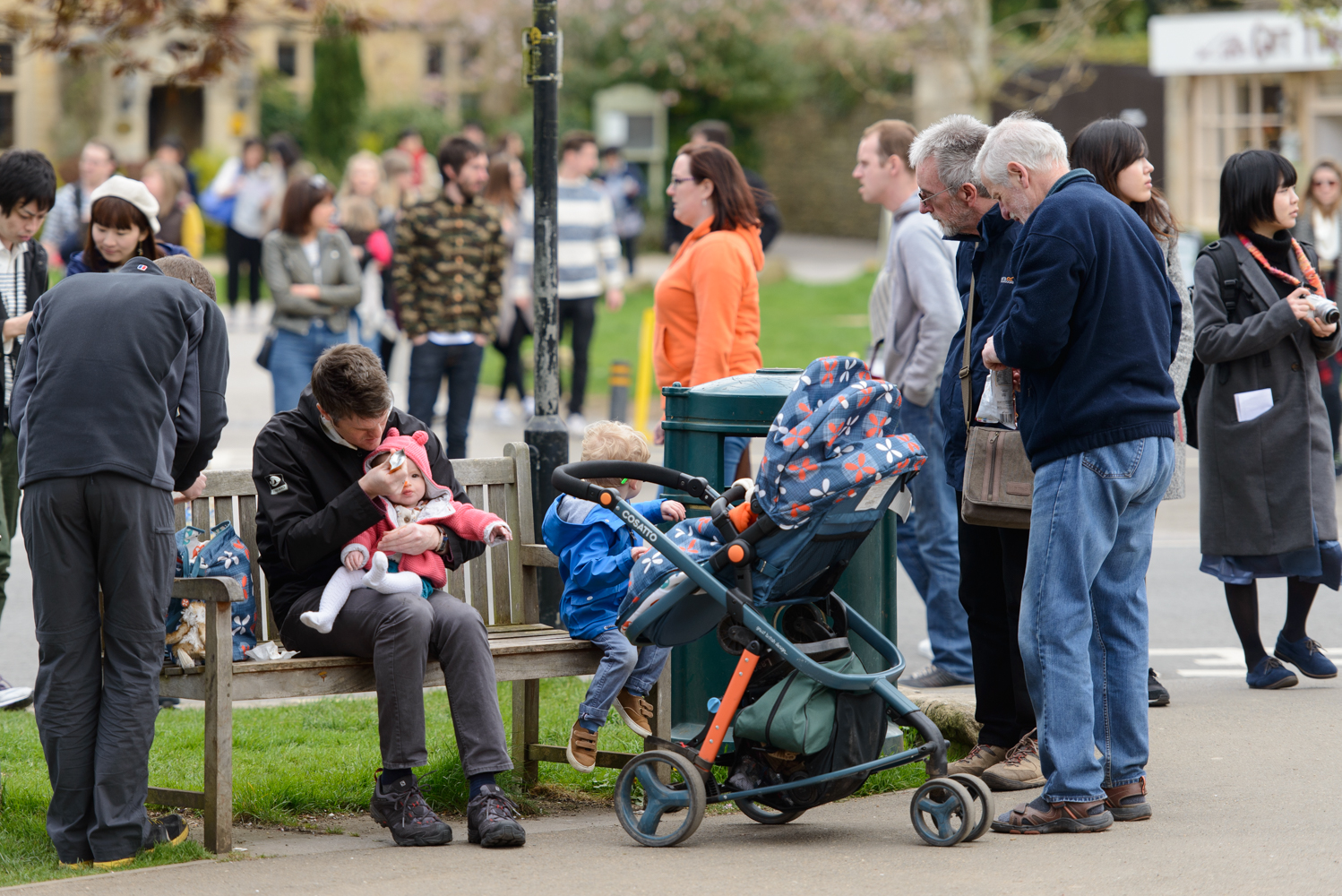 - The new Image 7 shows a family finding a quiet spot within the crowd so that they can feed their baby.