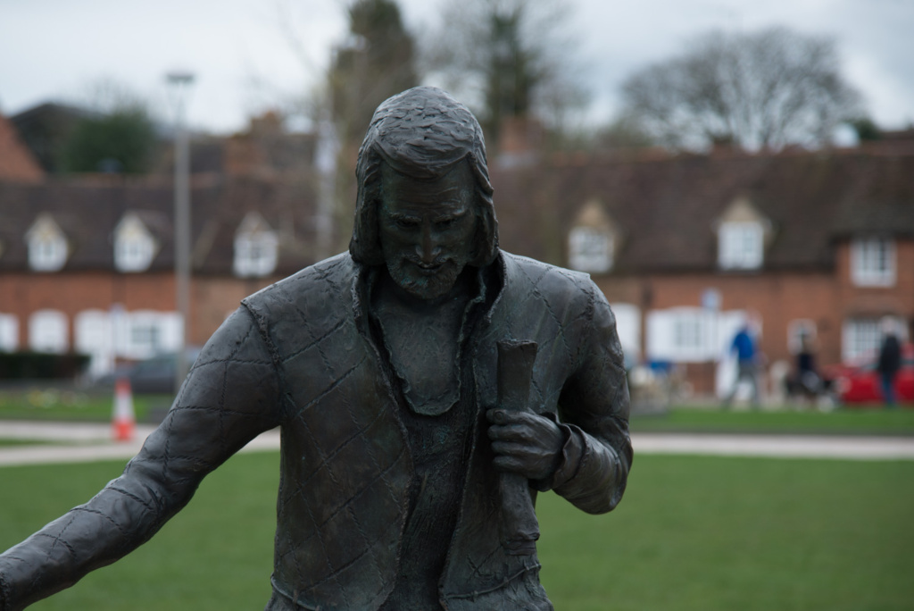 In this first image, a wide lens has been used.  I was standing very close to the statue so that it filled the frame but the scene behind the statue reflects the wide lens, a large part of the area behind is seen.