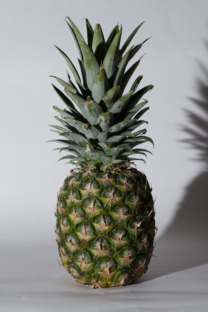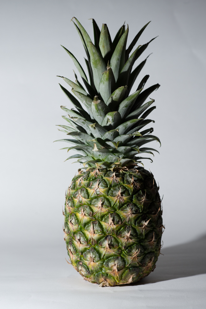 For this exercise I decided to capture a pineapple – partly due to the colours it has but also because of its textured surface and sprouting leaves which I thought would make a challenging but interesting subject to light.