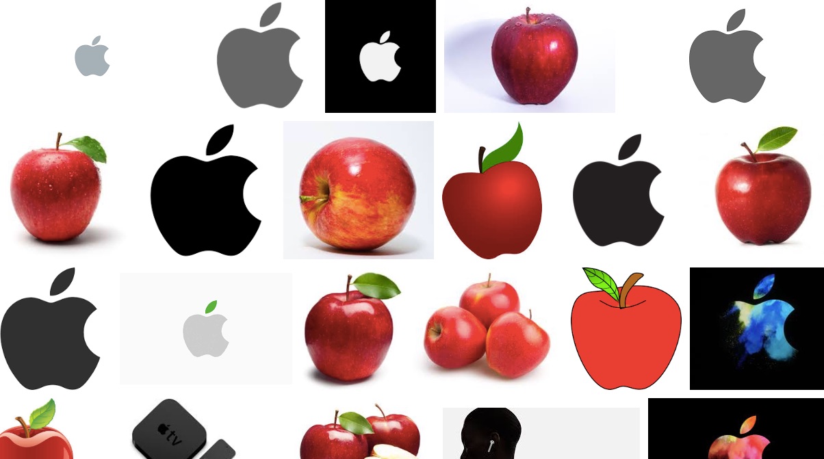 I decided to photograph an apple, it is an example in the course notes and the question. A screen shot of a google search is shown below. Searching on the word apple returns either red apples on white backgrounds or of the computer company Apple’s logo.