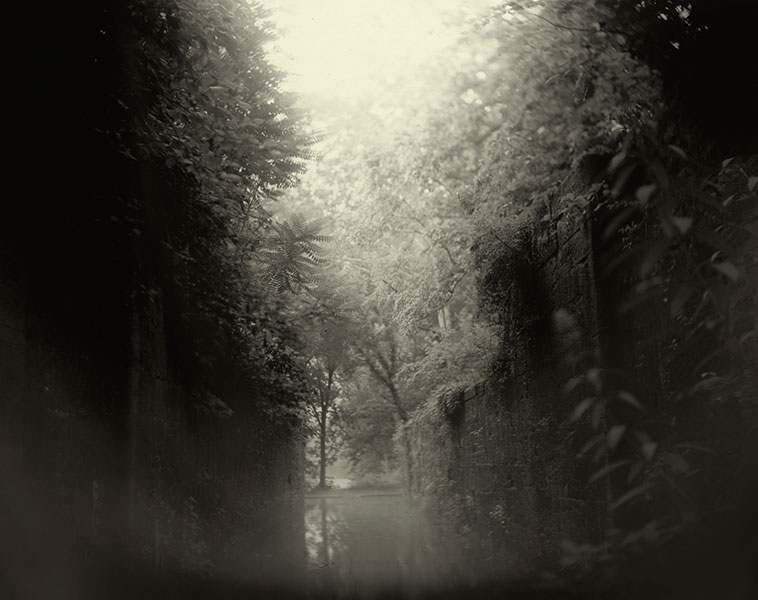 As Mann’s images are in black and white, there is no clue as to what time of day the images are captured however given the bright glow that the light is creating, I suspect the timing was judged so that the framing of the trees would capture a shot directly into the sunlight, or close to it.
